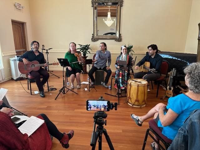 Residents didn’t just attend a concert; they learned at every step. They explored how acoustics shape sound in a small performance space, how community-based arts organizations thrive, and how music reflects culture and history. The December afternoon performance by El SurCo transported listeners through the musical landscapes of Argentina, Chile, and neighboring regions, blending guitars, violin, charango, bombo, and vocal harmonies into a vibrant cultural lesson.